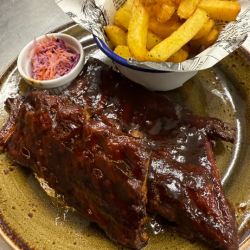 Pork ribs with honey-lemongrass marinade. Served with country fries and Coleslaw